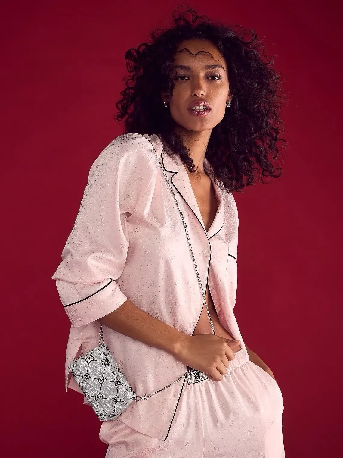 Lleva un poco de brillo contigo a todas partes. Este bolso cruzado con diamantes de imitación es el complemento perfecto para cualquier look navideño.